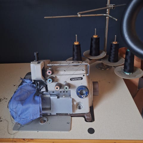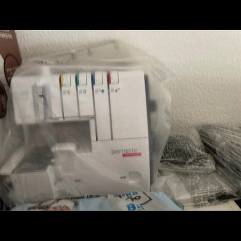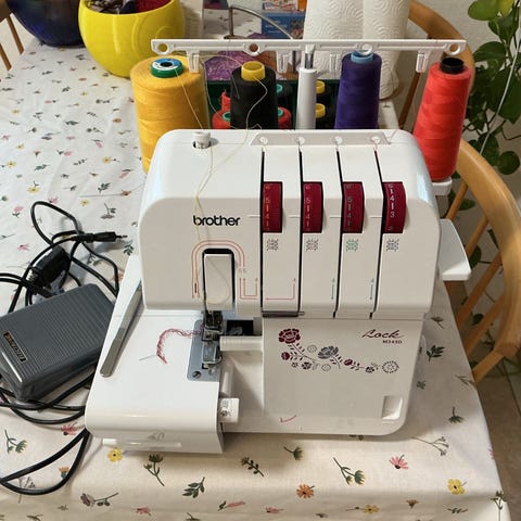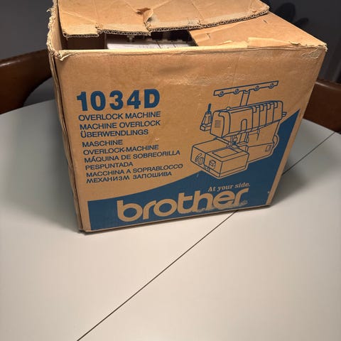 Brother Lock symaskine i hvid farve. Maskinen er beregnet til overlock-syning med flere tråde, hvilket gør den velegnet til at sy og afslutte kanter på stof. Den leveres med strømledning og brugsanvisning.