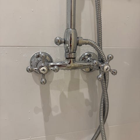 Geyser Allround Shower bruserhoved og slange med justerbar brusefunktion. Produktet er designet til alsidig brug og inkluderer en fleksibel slange. Materialet og farven er ikke specificeret. Velegnet til installation i forskellige badeværelsesmiljøer.
