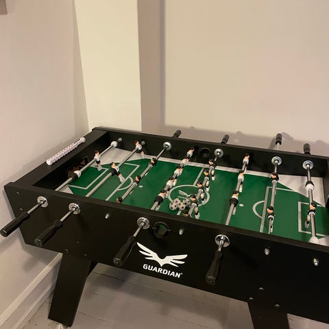 Bordfodboldbordet er et Evolution by Garlando med teleskopstænger.