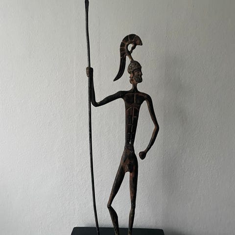 Mandsfigur med sværd, triumferende holder en Laurbær.