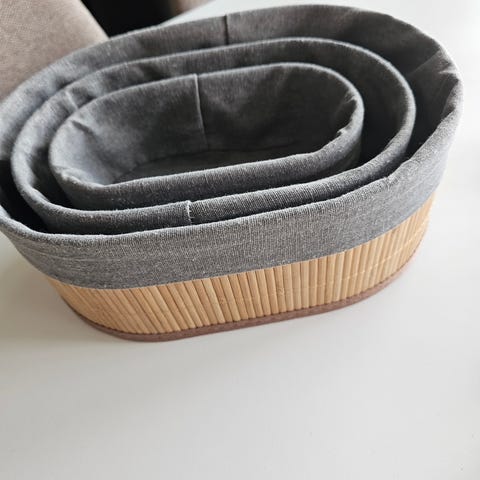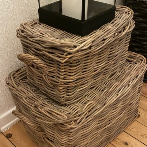 kurvesæt i rattan. Sættet indeholder tre kurve i forskellige størrelser med naturlig farve. Velegnet til opbevaring i hjemmet, og kan bruges til både tøj, legetøj eller som dekorative elementer.