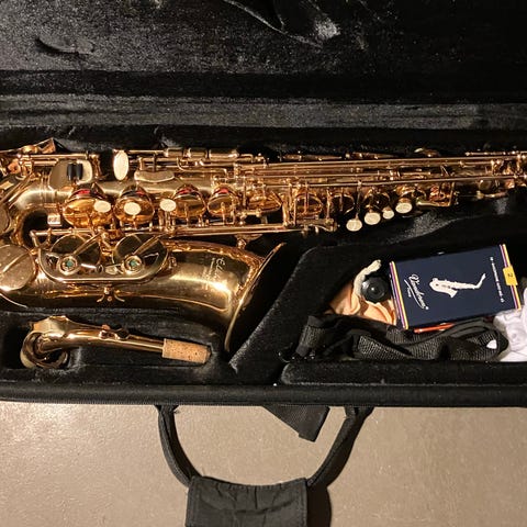 King B10 altosaxofon fra 1970'erne. Serienummer 511842. Solid saxofon med god klang. En lille bule, som ikke har betydning for lyden, og ellers i fin stand. Perfekt til elever eller som backup-instrument. Instrumentet befinder sig ikke på min adresse, så skriv venligst mindst en dag i forvejen, hvis du ønsker at se/prøve det - så skal jeg hente den.