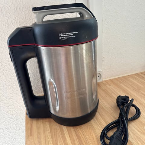 Tefal easy soup super fin maskine til at lave suppe på,kan selv varme og koge og evt blende suppen,købt til min datter hun har kun brugt den 1 gang ,så nu må den vidre