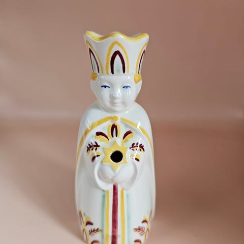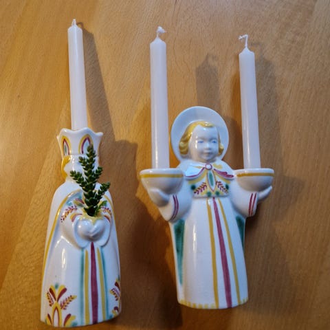 Aluminia jule prinsesse til to kerte lys. Fremstår meget flot, som ny. H 13 cm br 10 cm Figuren er en udad en serie, med en prins, en prinsesse og en engel.