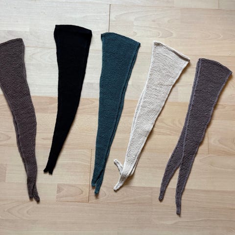 Mangler du lige et fint ny strikket tørklæde / hætte så har du muligheden her. Det brune, grønne og mørkeblå er hætte tørklæder, de måleres 110cm fra spids til midt hætte. Det jeansblå er også et hætte tørklæde og måler ca 120cm fra spids til midt hætte. Det mørkegrå er et tørklæde der kan nå 2 gange rundt om halsen og er ca. 120 cm fuld længde. De er strikket i det lækreste bløde garn, der ikke kradser. Se garn typer på foto. Hætte tørklæde koster 225kr pr. Stk og tørklæde koster 150kr. Fra røgfrit hjem. Afhentes 3230 Esbønderrup eller sendes på købers regning.