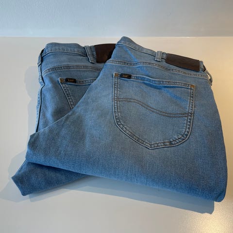 Et par yderst rustikke cowboybukser fra Lee. Det angives godt nok på dem, at de er 30/33 men reelt set forekommer det omvendt, således det er: 33/30. Der må eventuelt have sket en fejl på fabrikken i sin tid. Udover det, så er de (som sådan) fine.
