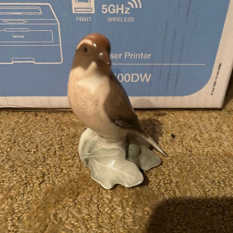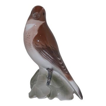 Bing & Grøndahl fuglefigur tornirsk, fremstillet i porcelæn med detaljeret håndmaling. Figuren forestiller en fugl siddende på en gren med naturlige farver i brune og grønne farver. Ca 11 cm høj. Nr 2020