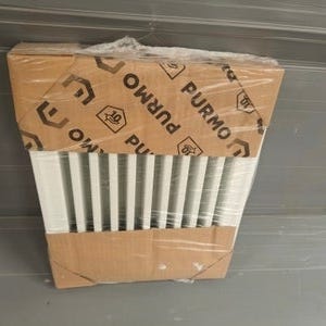 1 stk fabriksny radiator i original emballage. 50 cm høj og 40 cm lang. Enkelt med lameller. Med beslag.