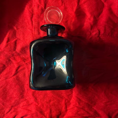 Holmegaard blå glas karaffel / klukflaske