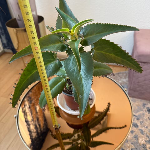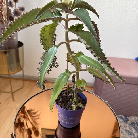 Nilgud , Sukkulent, Nilgud er en saftplante med aflange, tilspidsede, brunplettede blade. I bladrandens indhak dannes små, fuldt færdige planter med rod. Efterhånden løsner de sig fra bladet og falder til jorden, hvor de slår rod og udvikler sig til nye nilgudplanter.