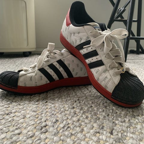 Adidas Hamburg i colorway White/Red/Gum sælges uden original æske, da den røg ud i forbindelse med flytning. Skoene blev købt ved release i 2014, og har ikke været re-issued i denne colorway siden.