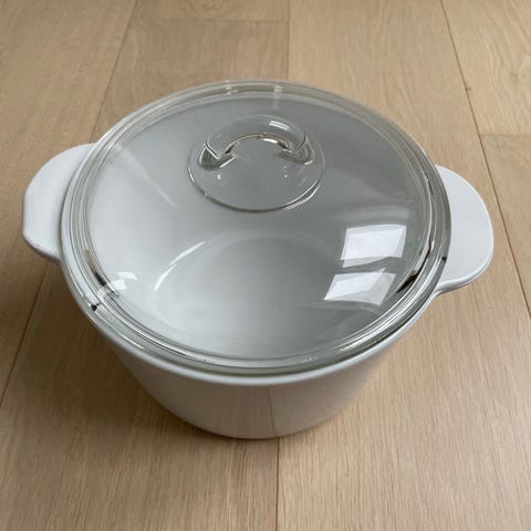 - En 3 liter, hvid med glaslåg, aldrig brugt.