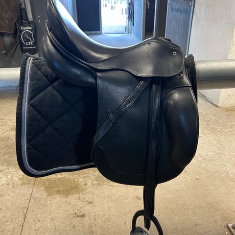 Lækker Passier Corona 2 fra 2020. Sadlen er med freesom-panels og bred i kammeret. Den er 17" og i Kalveskin, med god knæstøtte. (Model 2, med formstøbte knæstøtte i sadel klappen) Pæn ens uld stopning. Sadlen har et slid på den ene sadelklap, kosmetisk betyning. Bom str 28,5 kan dog let ændres ved sadelmager.