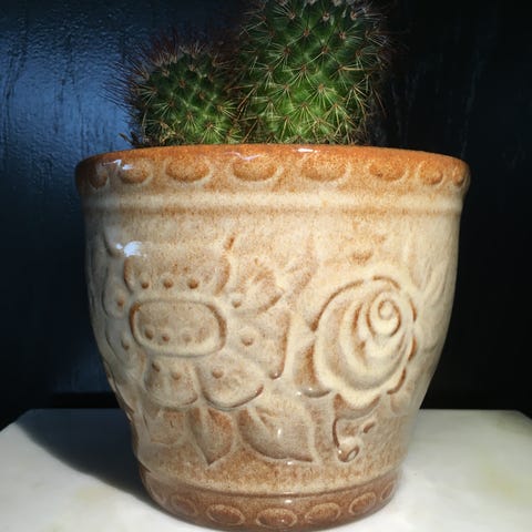 Tre smukke enkle urtepotteskjulere med syrenfarvet / lyslilla glasur. Næsten ens i farve og udformning, forskellig i størrelse. Fra tyske Scheurich. Lidt brugsspor, men rigtig pæn stand. Stempler under bunden.