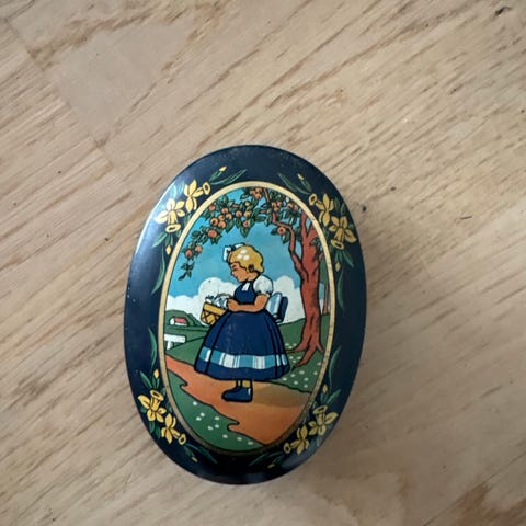 Rund sæbedåse med original prismærke fra Irma. Sæben er væk, men dåsen er i rigtigt god stand.