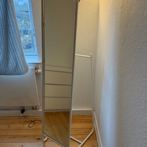 Stående spejl med rustik look i cremefarvet metalramme