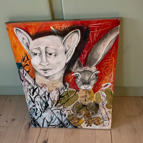 Helt fantastisk unika maleri af Pernille Struer som er signeret bag på. 52cm x 52cm.
