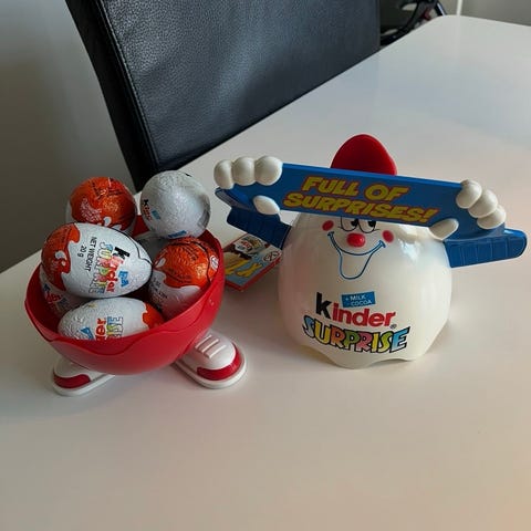 En samling af forskellige små legetøjsfigurer og Indeholder plastikfigurer og små beholdere, velegnet til samling eller leg.