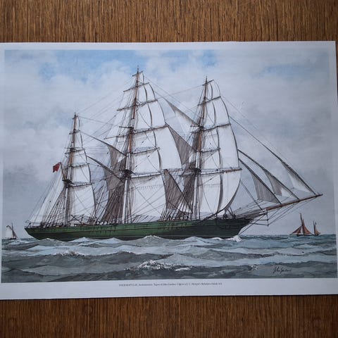 Sejlskib tegnet af John Gardner. NIPPON MARU Japan.