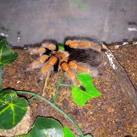 Sælger min afrikanske kæmpe knæler med indrettet terrarie 15x17x22. Transportbøtte til knæler medfølger. Den har moltet 1 gang mens vi har haft den.