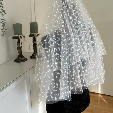 2-lags brudeslør med påsyet blonde m. sølvtråde. Længde 70 cm og i farven knækkethvid.