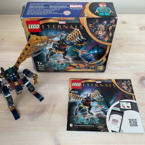 Ca. 30 cm. høj og 18 cm. bred legofigur. Figuren er fra Marvel Eternals og kaldes en Celastial. Figuren er kun brugt som pynt og er derfor ikke slidt. Flot og episk og en fornøjelse at have stående eller også brugbar til leg. Man kan justere på delene og på den måde ændre den stillinger.