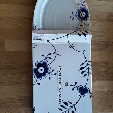 Gifts with History-sættet med to ovale fade er perfekt til dig, som ønsker at kombinere dine favoritstel i en personlig borddækning. De håndmalede blomster på Blå Mega Riflet 28 cm fadet komplementerer perfekt de elegante rifler på Hvid Riflet 35 cm fadet, men de to fade er ligeså yndefulde hver for sig.