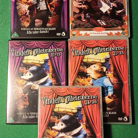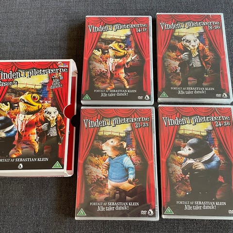 DVD bokssæt med 4 DVDer. Det er kun 1 der er åbnet. Sæson 2 af den gode klassiker Vinden i Piletræerne. Fortalt af Sebastian Klein. Alle figurer taler dansk