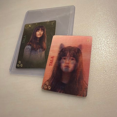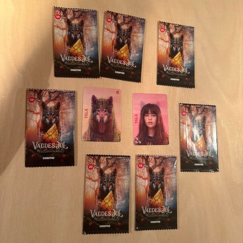 TALA Kortspil Valdesjul Vintermagi med vintertema og illustrationer af en pige og en ulv. Spillet indeholder flere kort med forskellige motiver og er velegnet til samling eller spil.
