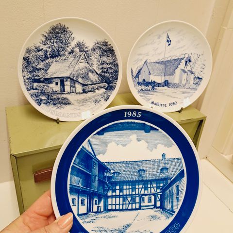 2 vintage platter/tallerkner med guldskrift og ordlyd “hvad er et hjem uden moder” og “ hvad er et hjem uden fader”. Meget smukke og uden brugsmærker. Monteret med snor til ophæng. Størrelse diameter 15 cm.