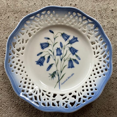 2 smukke vintage platter/tallerkner med guldskrift, sælges for 60 kr.