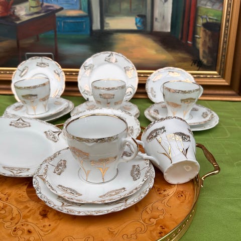 6 par kopper med yndigt gåsemotiv