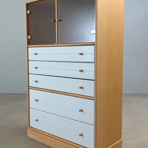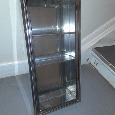 Skab i stål, og glas.