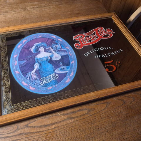 Super flot Pepsi Cola vintagespejl - 5 cent "I glass or bottle"