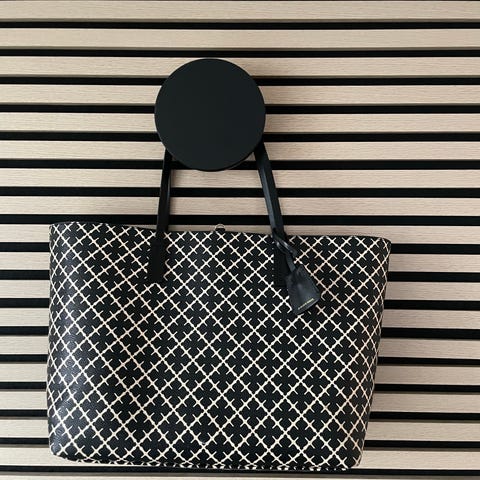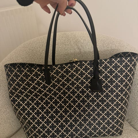 By Malene Birger taske i læder designet til kvinder. Tasken har et mønstret ydre og to håndtag. Materialet er læder, hvilket giver holdbarhed og et klassisk udseende.