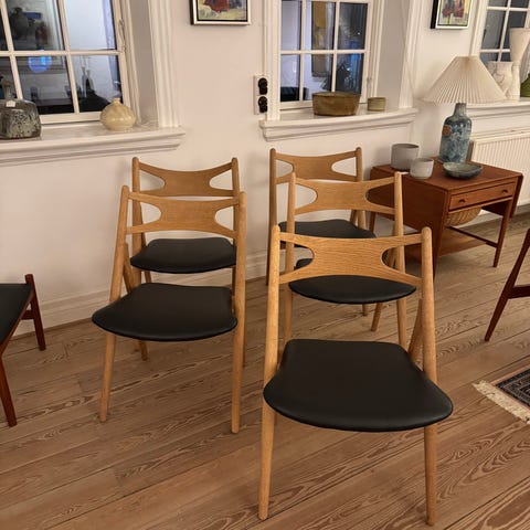 Hans J. Wegner CH50 i eg med sort læder.
