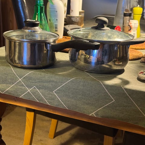 Da vi skal have nyt komfur , sælger jeg mine Rebild gryder Der 5 stk sælges kun samlet og prisen er fast. sendes ikke