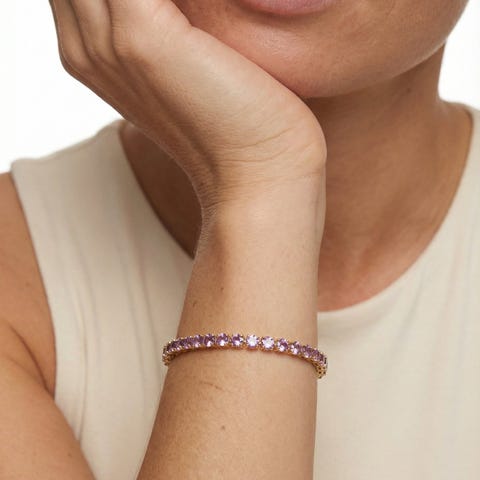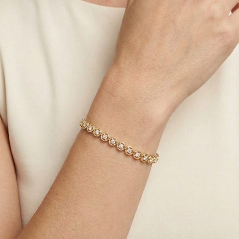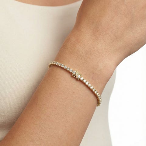 Tennisarmbånd i 14K guld med hvide sten, 17 cm, 10.66 g-Guld