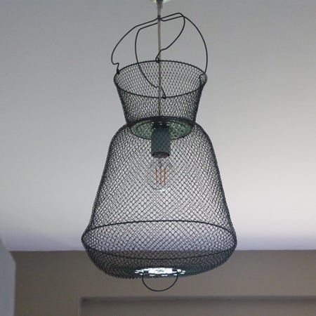 Pendel, Håndlavede lamper af orange #lampetrawlflåd fra fiskenet (slagfast plast). Lavet med bakkelit E27 fatninger. De måler 20 cm i diameter på det bredeste sted og er 16 cm i højden på selve den orange del.