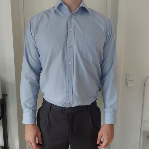 Skjorte, Van Heusen, str. L, Blandede, 60% bomuld &. 40% polyester, Næsten som ny, 4 Super smarte strygefri skjorter - iron wrinkle free - str 16-16 1/2 34/35 - regular fit - årsag til salg er at de er blevet for store - hvis det bliver så hårdt til at stryge :-) (giv et bud!) sælges både samlet og hver for sig - samlet pris