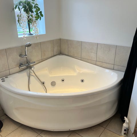 Hjørnespa, 140x140cm. 6 kw varmelegeme. Kosmetisk og teknisk fejlfri.