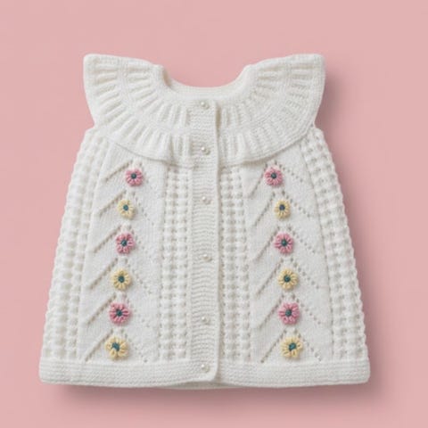 4 forskellige typer håndstrikkede babyveste. Til alderen 1 til 1,5 år.