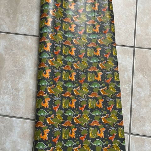 farvelægningspapir fyldt med fantastiske dinosaur motiver… på ca. 9m (et lille stykke mangler). Findes ikke længere i Ikea. Kan sendes.