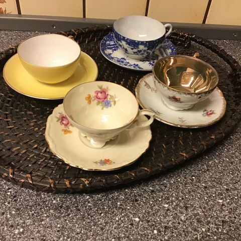 Retro / vintage, kaffekop + underkop samt to kagetallerkener fra stellet Birte produceret af Knabstrup.