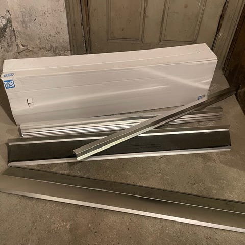 Sælger et samlet parti af helt nye og ubrugte ICOPAL alu-vindskeder samt 1 stk. RAW alu tagfod.