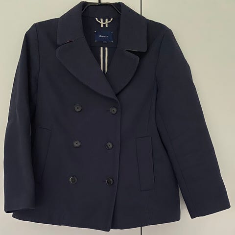 Flot dobbelt radet uld pjækkert fra Gant der kan bruges af både herrer og damer. Er størrelse 170, så damer i størrelse small til medium kan bruge den.