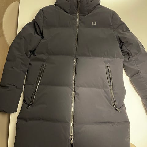 1 år gl UBR Dun jakke, i str. XL, hul/flænge (4 cm * 5 cm) på ryg som skal "lappes" derfor denne vild billige pris. Ny pris i Okt. 24' kr. 7500.- Fejler INTET ud over revnen på ryggen