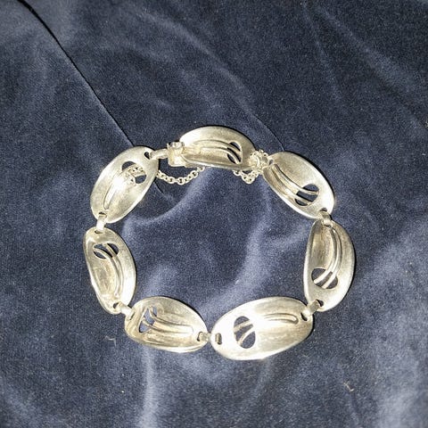 Vintage sølv armbånd i skønvirkestil med bladmønster