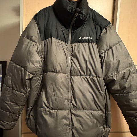 Varm vinterfrakke med hætte. Sort, Columbia. Kun brugt i korte perioder. Meget pæn stand.