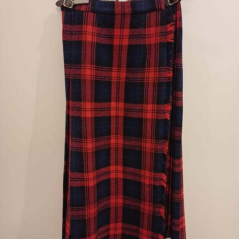 Smuk vintage midi nederdel i små ternet uld.